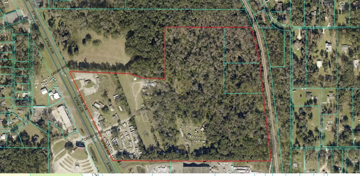 52.83 acres of prime commercial land located at 4705 S Pine Ave in Ocala, FL. Zoned B-5 (Heavy Commercial), this property offers outstanding visibility and frontage along South Pine Avenue (US-441/27), one of the area’s busiest north-south corridors. The site will be delivered vacant, providing a rare opportunity for redevelopment or build-to-suit projects. The property also benefits from potential CSX rail access, creating added flexibility for logistics, distribution, or rail-served industrial users.